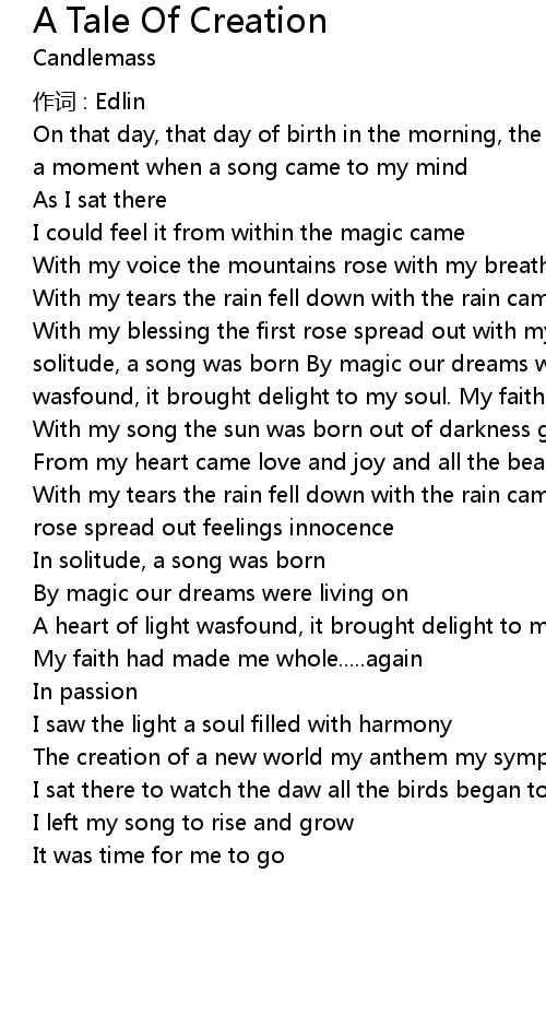 | Song | A Tale Of Creation |