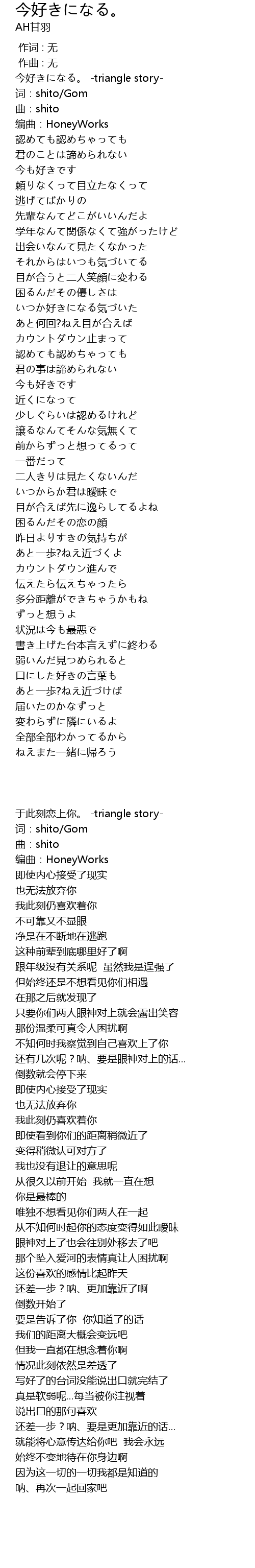 | [00:00.443] | 今好きになる。 -triangle story- |