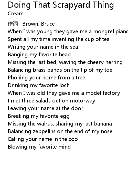 | Song | Doing That Scrapyard Thing |