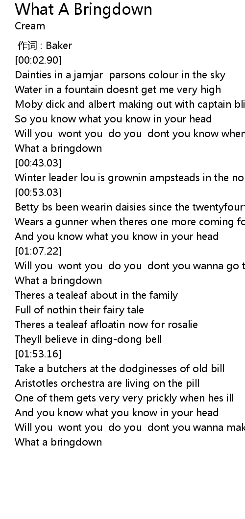 | [02:44.66] | Will you wont you do you dont you wanna make more bread |