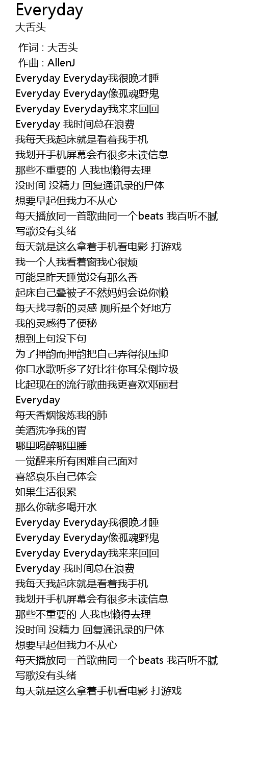 | [00:23.927] | Everyday Everyday我很晚才睡 |