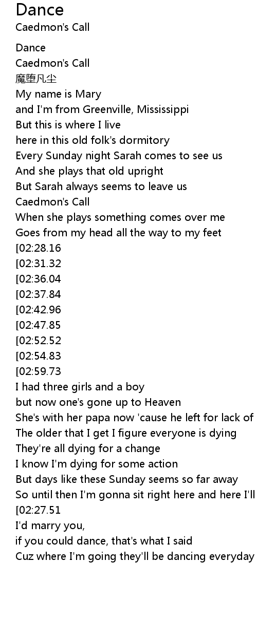 | [03:29.25] | Cuz where I' m going they' ll be dancing everyday |