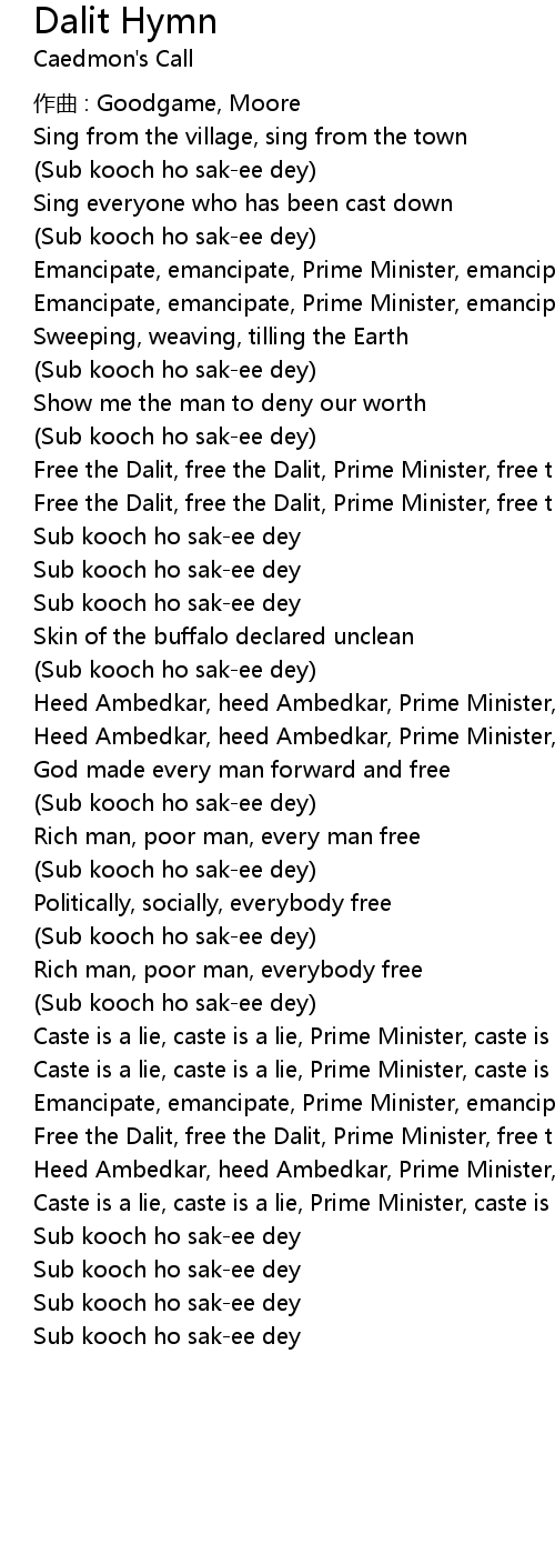 | Free the Dalit, free the Dalit, Prime Minister, free the Dalit | |