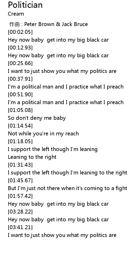 | [00:57.88] | I'm a political man and I practice what I preach |