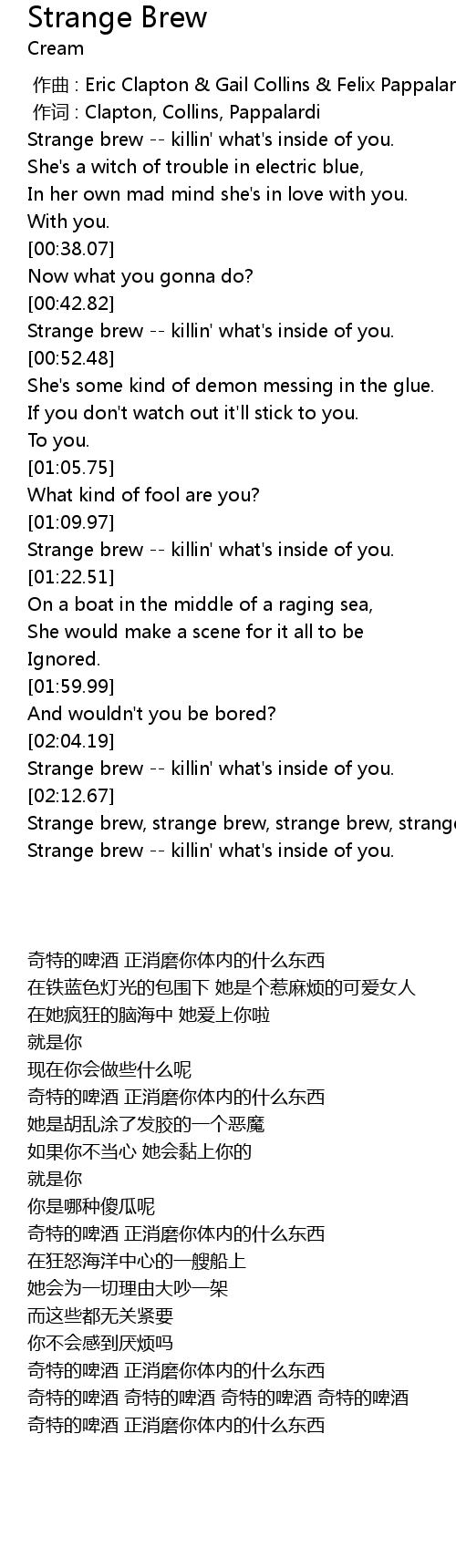 | [02:16.75] | Strange brew, strange brew, strange brew, strange brew. |