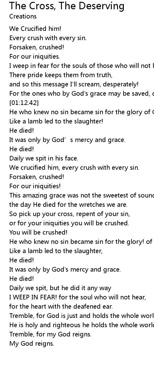 | [01:43.75] | We crucified him, every crush with every sin. |