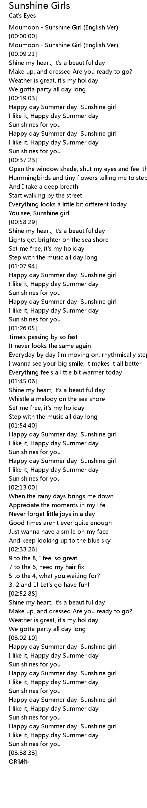 | [03:11.69] | Happy day Summer day Sunshine girl |