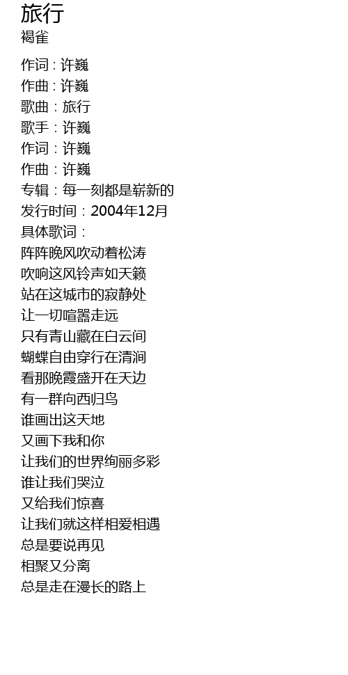 | gē qǔ: lǚ xíng | |