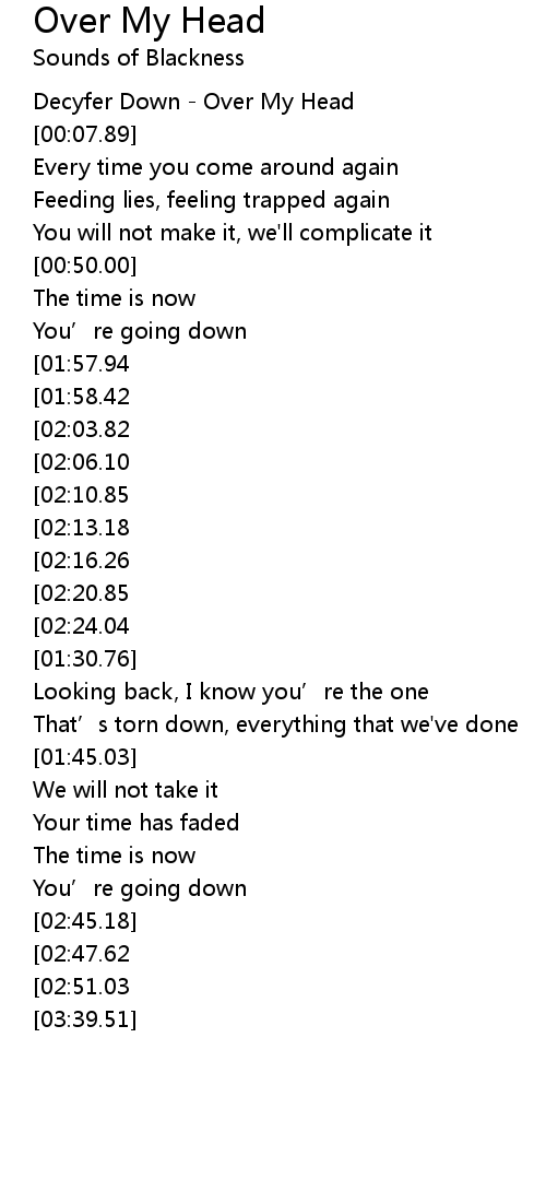 | [03:01.91][01:58.42][00:56.67] | When I' m in over my head |