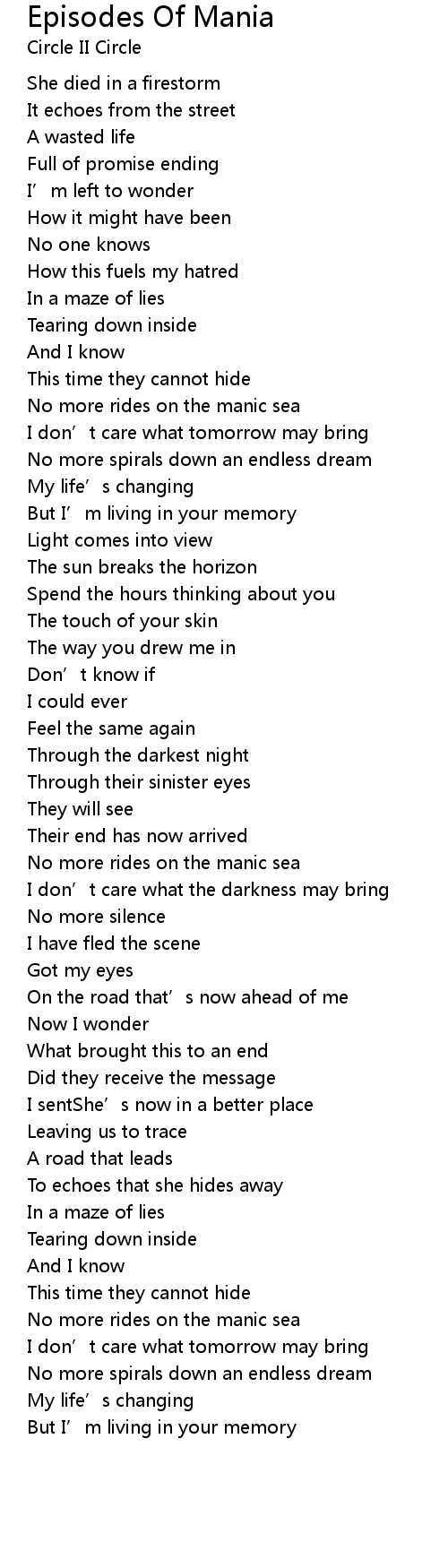 | Song | Episodes Of Mania |
