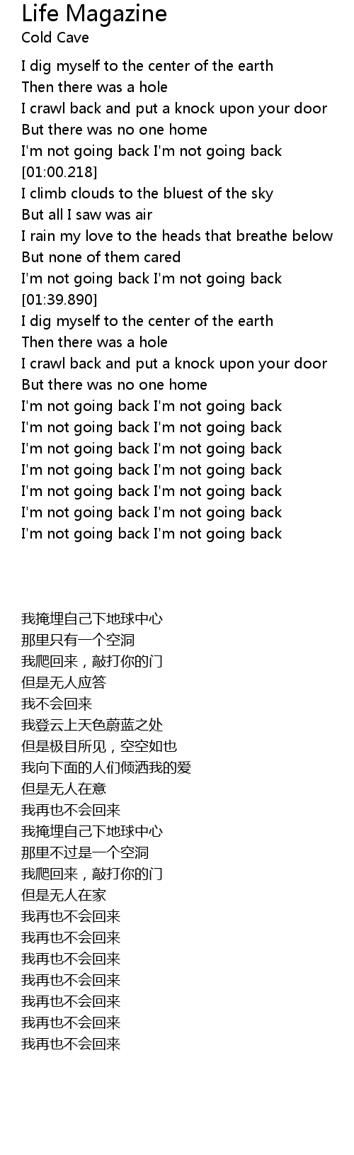 I'm not going back I'm not going back |