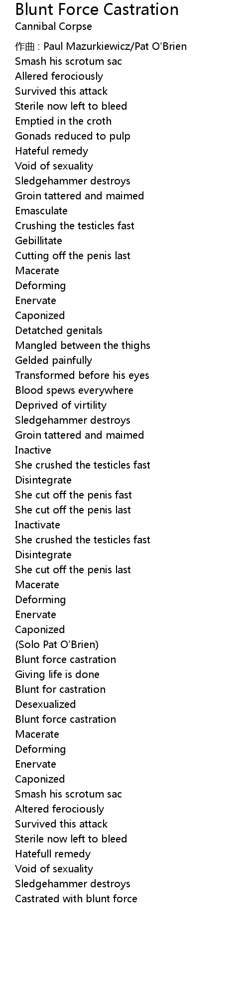 | Song | Blunt Force Castration |