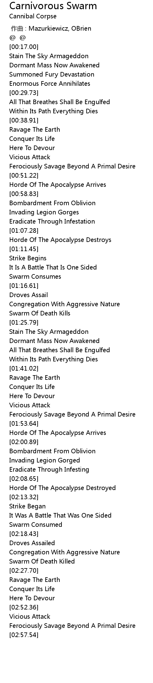 | [01:19.90] | Swarm Of Death Kills |