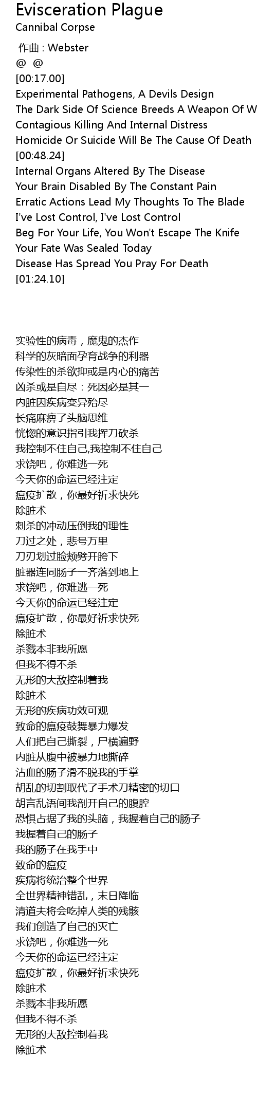 | [00:41.87] | Contagious Killing And Internal Distress |