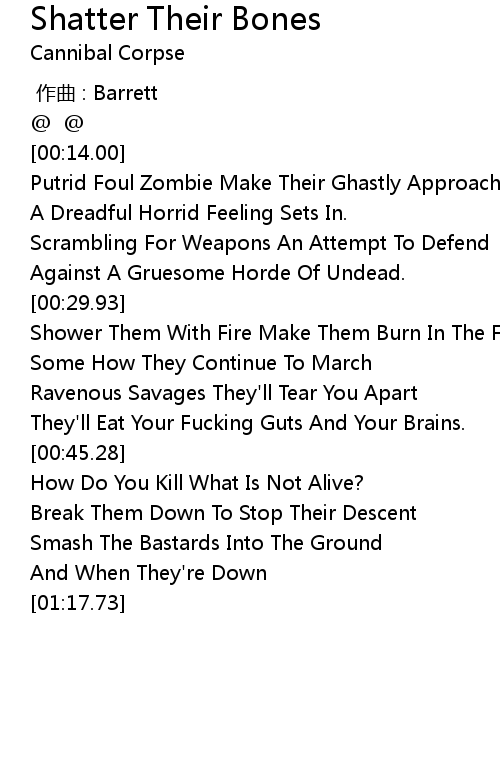 | [00:15.26] | Putrid Foul Zombie Make Their Ghastly Approach |