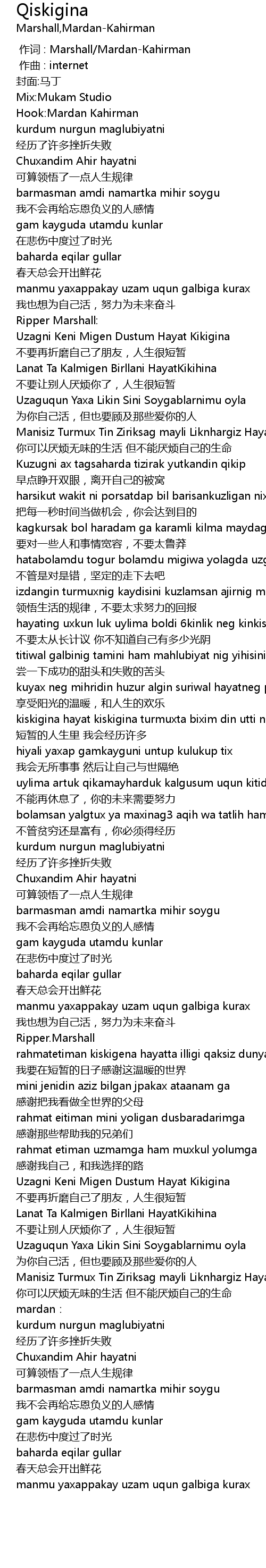 | [00:00.000] | 作词 : Marshall/Mardan-Kahirman |