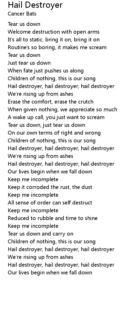 Hail destroyer, hail destroyer, hail destroyer |