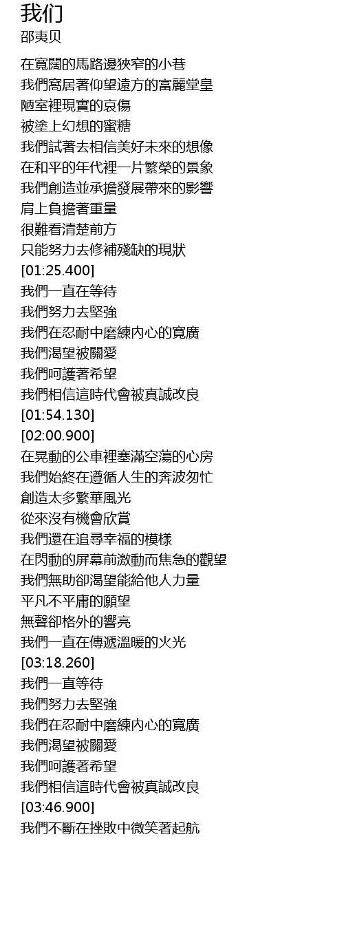 | [01:39.759] | 我們渴望被關愛 |
