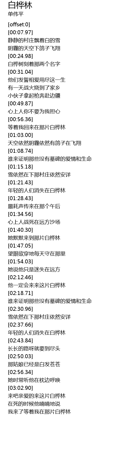 | [03:03.52] | 来吧亲爱的来这片白桦林 |