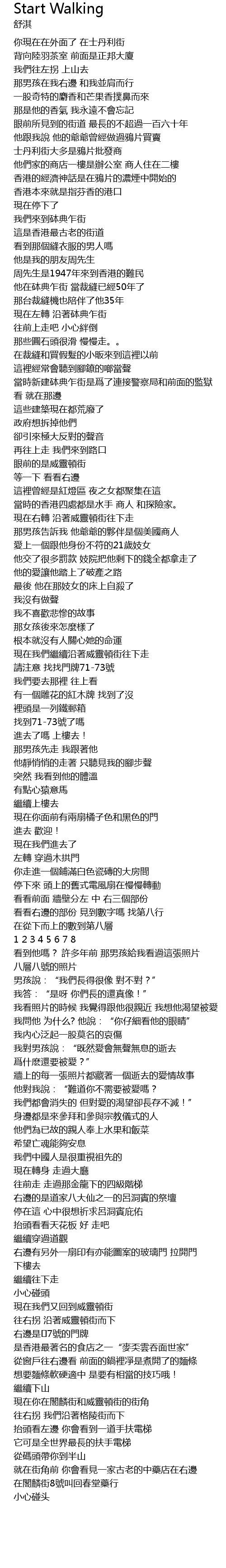 | [00:02.01] | 你現在在外面了 在士丹利街 |