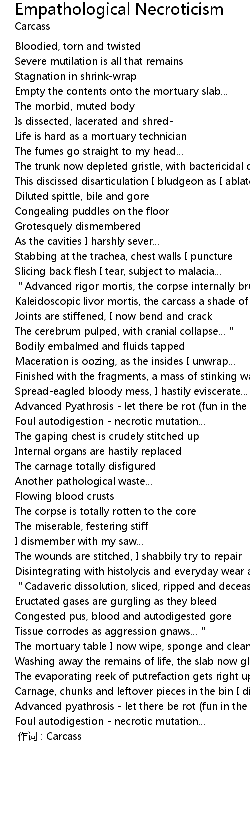 | [00:00.00] | 作词 : Carcass |