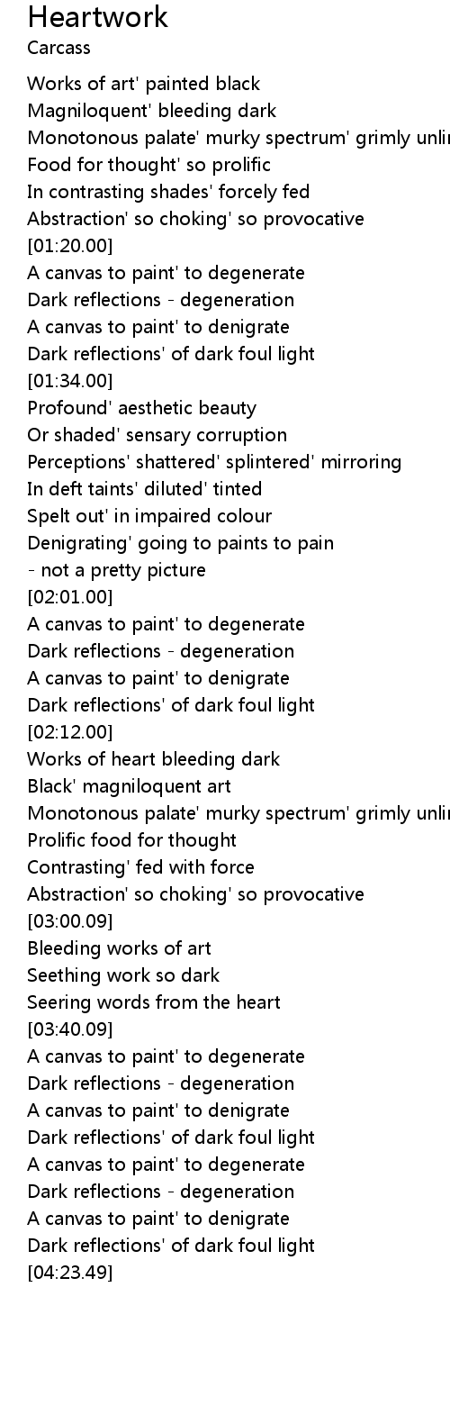 Heartwork Lyrics