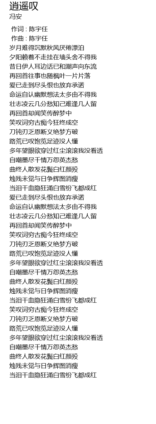 | [00:59.919] | 命运自认幽默想法太多由不得我 |