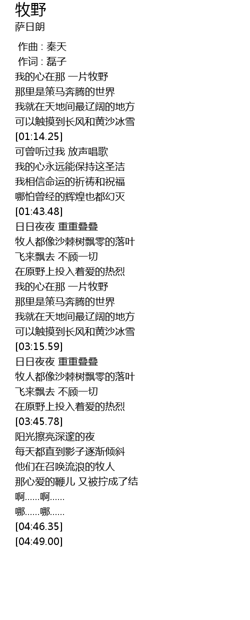 | [00:44.55] | 我的心在那 一片牧野 |
