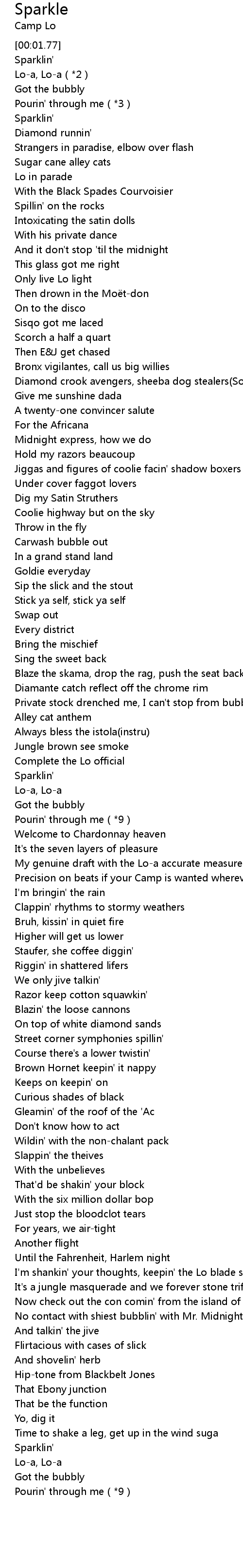| [01:12.85] | Diamante catch reflect off the chrome rim |