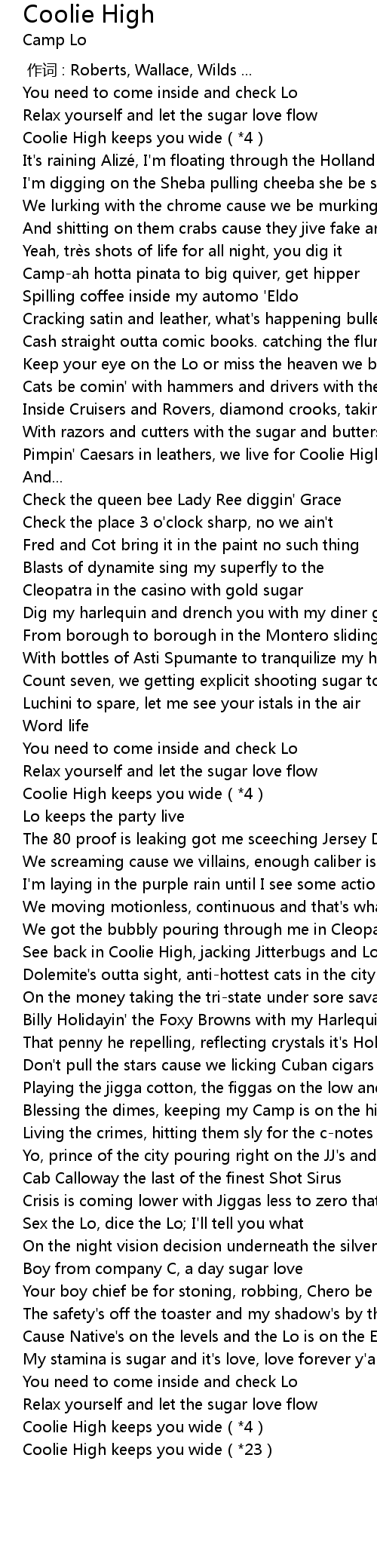 | [03:23.44] | Coolie High keeps you wide 23 |