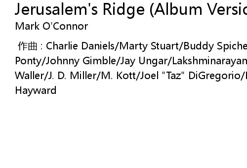 | [00:00.000] | 作曲 : Charlie Daniels/Marty Stuart/Buddy Spicher/Jean-Luc Ponty/Johnny Gimble/Jay Ungar/Lakshminarayana Shankar/Andy Razaf/J. Marshall/T. Waller/J. D. Miller/M. Kott/Joel "Taz" DiGregorio/E.K. Story/F. Edwards/Charlie Hayward |