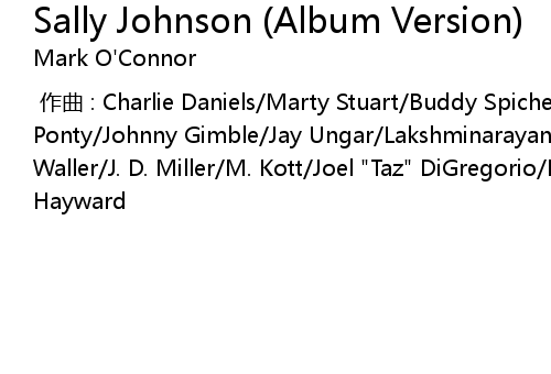 | [00:00.000] | 作曲 : Charlie Daniels/Marty Stuart/Buddy Spicher/Jean-Luc Ponty/Johnny Gimble/Jay Ungar/Lakshminarayana Shankar/Andy Razaf/J. Marshall/T. Waller/J. D. Miller/M. Kott/Joel "Taz" DiGregorio/E.K. Story/F. Edwards/Charlie Hayward |