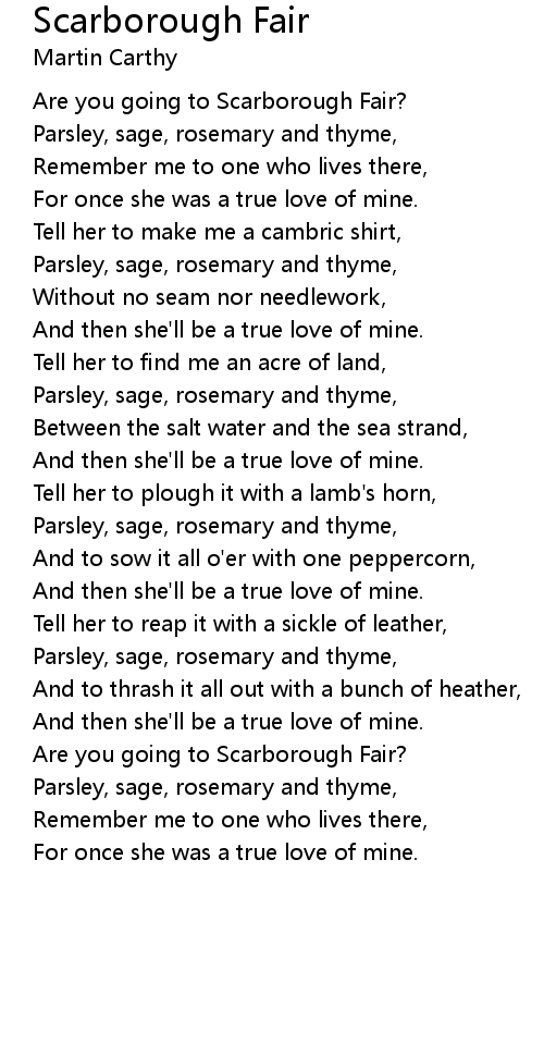 Are you going to Scarborough Fair? |