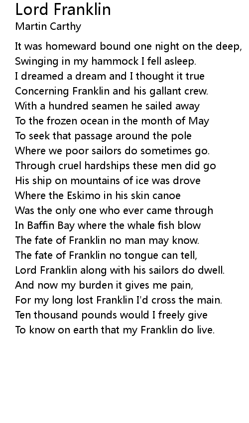Lord Franklin along with his sailors do dwell. |