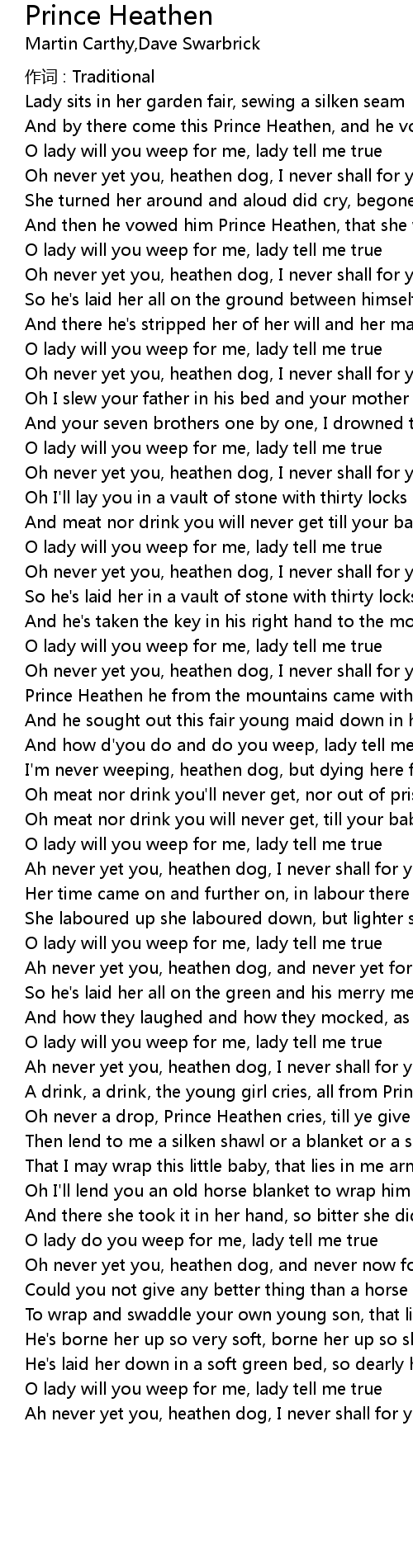 | Prince Heathen he from the mountains came with his merry men all in a line | |