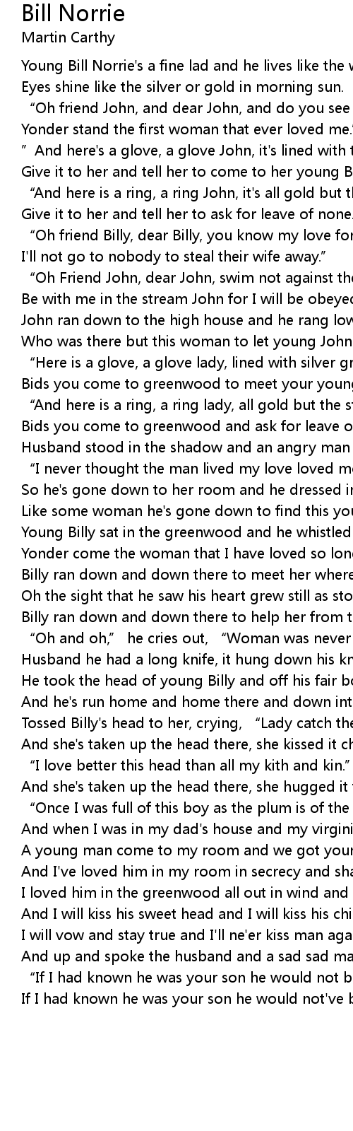 | Young Bill Norrie' s a fine lad and he lives like the wind, | |