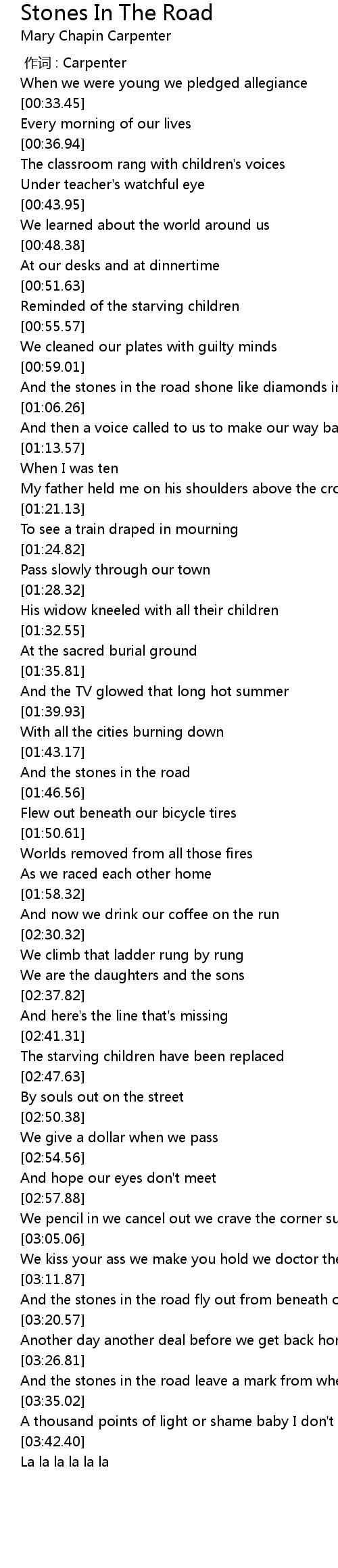 | [03:28.58] | And the stones in the road leave a mark from whence they came |
