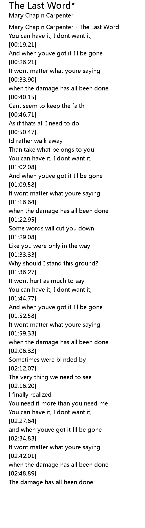 Mary Chapin Carpenter - The Last Word |