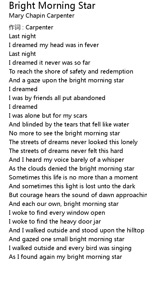 | Song | Bright Morning Star |