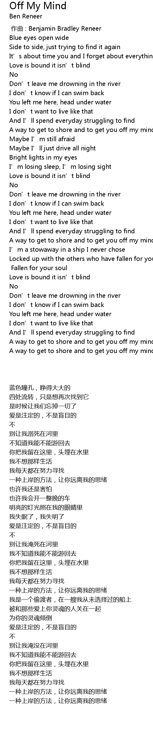 | [01:20.04] | A way to get to shore and to get you off my mind |