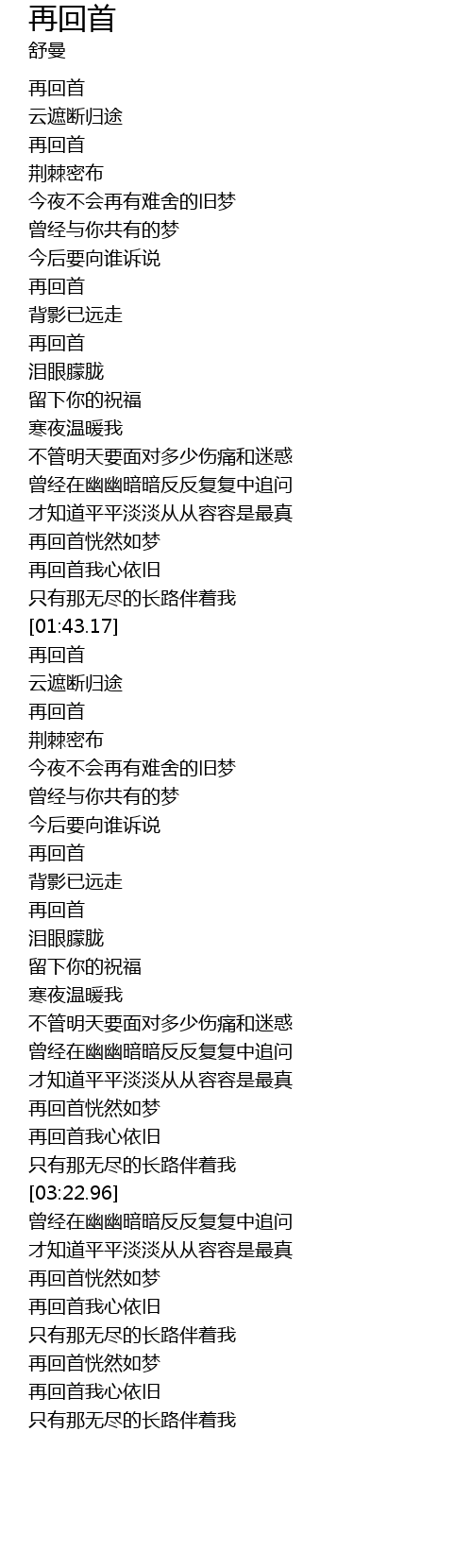 | [00:17.30] | 再回首 |