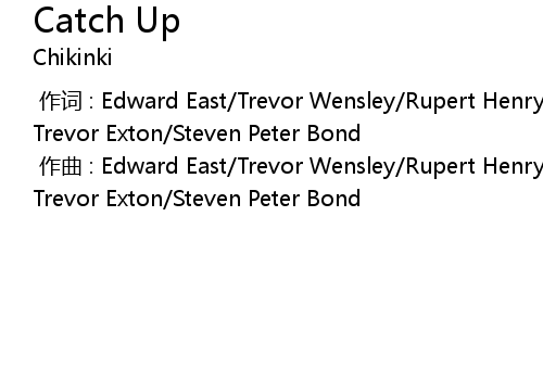 [00:00.000] 作词 : Edward East/Trevor Wensley/Rupert Henry James Browne/Simon Trevor Exton/Steven Peter Bond