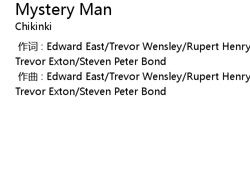 | [00:00.000] | 作曲 : Edward East/Trevor Wensley/Rupert Henry James Browne/Simon Trevor Exton/Steven Peter Bond |