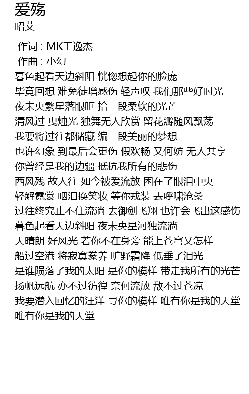 | [00:00.000] | 作词 : MK王逸杰 |