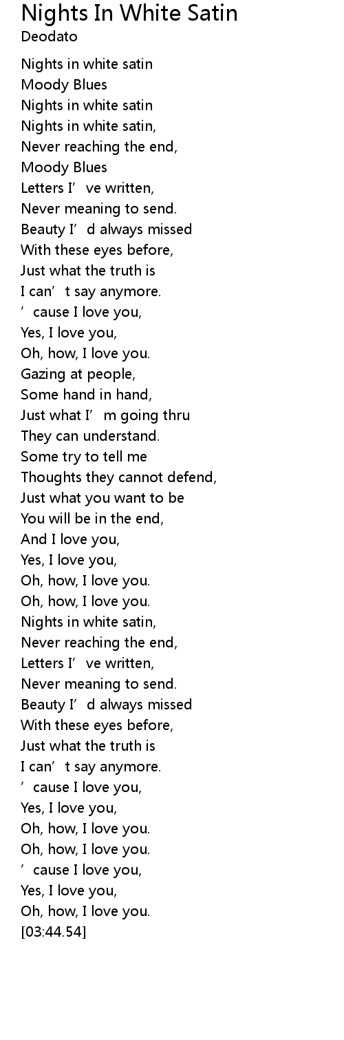 | [02:31.16] | Nights in white satin, |