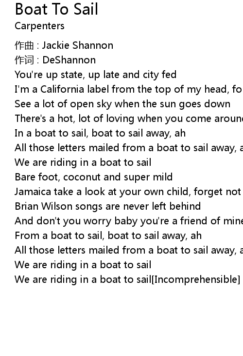 | From a boat to sail, boat to sail away, ah | |