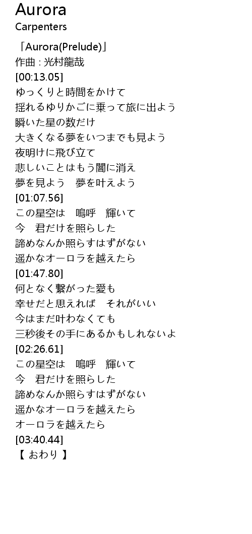 | [00:01.05] | 「Aurora(Prelude)」 |