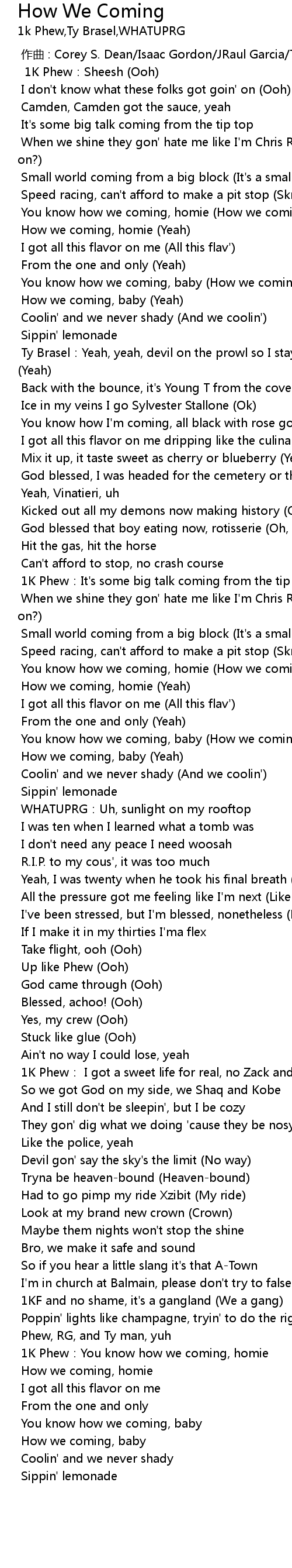 | [00:23.744] | You know how we coming, homie (How we coming) |