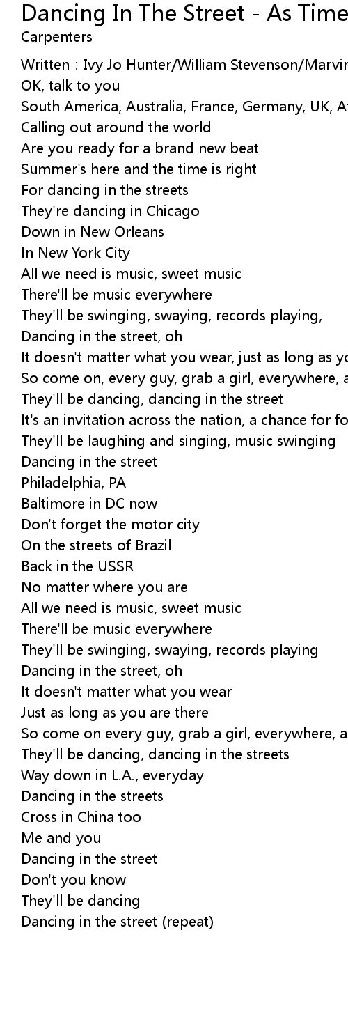 | Dancing in the street repeat |