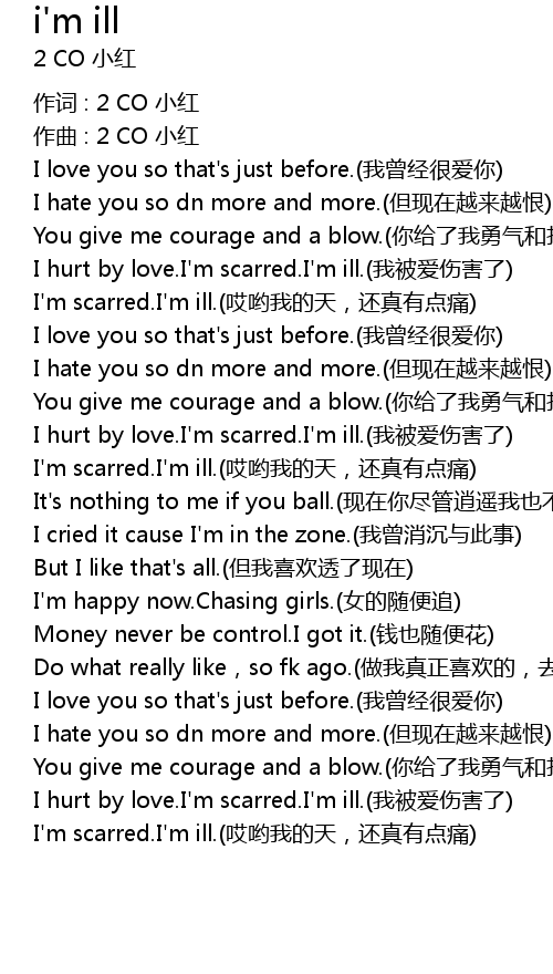 | I hurt by love.I'm scarred.I'm ill.(我被爱伤害了) | |